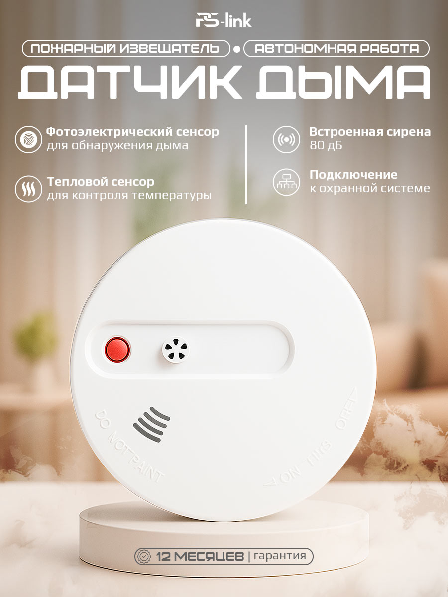 Беспроводной датчик дыма и тепла Ps-Link WHS101 — это современное решение для раннего обнаружения пожара в доме, офисе или квартире. Устройство оснащено двумя системами детекции: фотоэлектрическим сенсором дыма и тепловым датчиком, реагирующим на резкое повышение температуры свыше 57°C. Это позволяет выявлять угрозу на самых ранних этапах, когда огонь ещё не успел распространиться, а задымление только начинается. Датчик может работать как автономно, так и в составе комплексной системы безопасности.