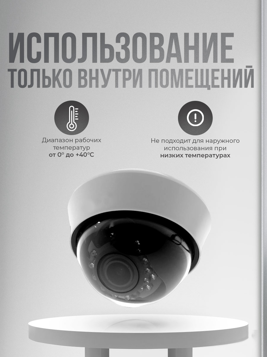 Применяемая в камере технология AHD позволяет передать видеопоток высокого качества 1944P по коаксиальному кабелю на расстояние до 500 м без потерь качества и задержек. Пластиковый корпус без защиты от влаги подразумевает размещение камеры в помещении и подключение ее к AHD видеорегистратору. Встроенные ИК-фильтр, ИК-подсветка и фотосенсор обеспечат автоматический переход к ночной съемке для обеспечения качественного изображения при отсутствии освещения.